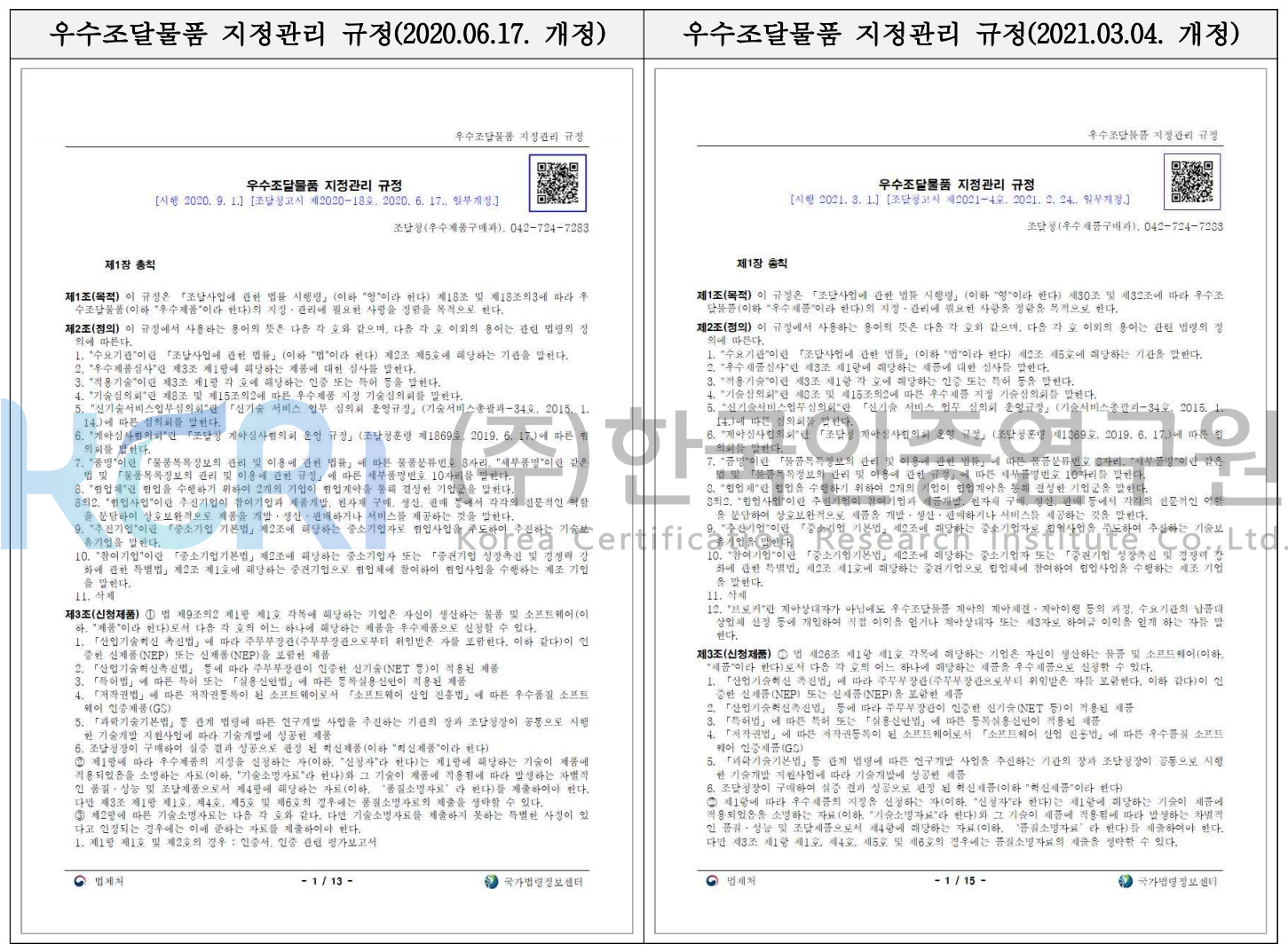 조달청에서 2021년 2월 24일 자로 우수조달물품 지정관리 규정을 개정하여 공고하였습니다.
